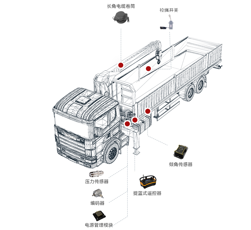 支持转台回转控制、高度限位控制、变幅和卷扬控制。